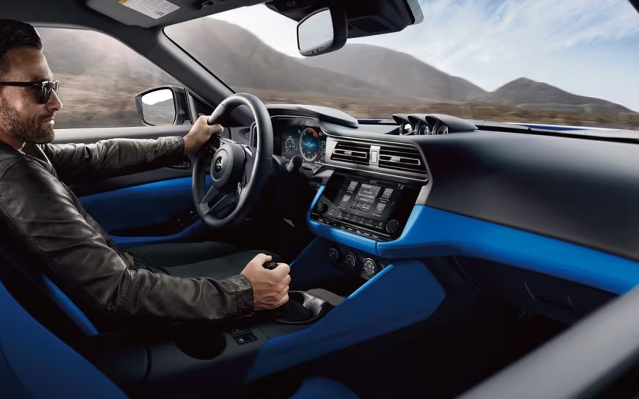L’intérieur de la Nissan Z 2024 respire la sportivité et la convivialité. En effet, vous profiterez d’un habitacle orienté vers le conducteur et comportant de série un écran tactile de 8 pouces de même que de commodités comme le démarrage par bouton-poussoir, 2 prises de courant 12V, un rétroviseur intérieur antiéblouissement et un volant à 3 branches gainé de cuir avec emblème d’indication de modèle, entre autres.