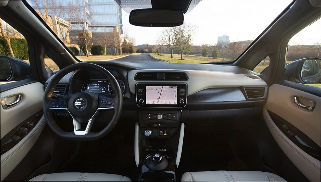 L’aménagement intérieur de la Leaf est non seulement élégant, mais s’avère aussi très convivial avec une planche de bord ergonomique, des sièges ultra confortables et suffisamment d’espace pour les jambes, sans oublier un habitacle très silencieux. Et quelle que soit la teinte que vous choisirez entre les Blanc nacré, Gris Poudre métallisé, Braise écarlate, Bleu nacré profond, Noir intense ou Soleil couchant, votre Leaf vous mènera à bon port en tout confort et en élégance.
